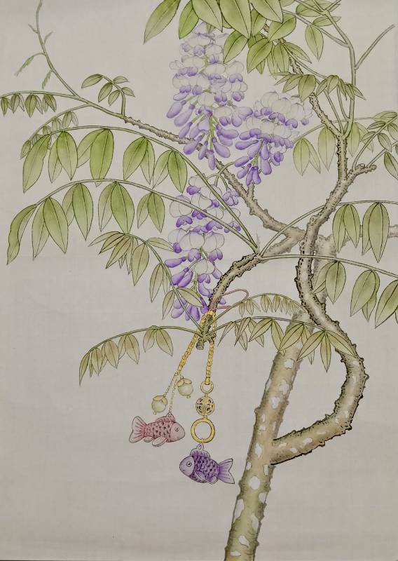 | 隨類賦彩,花與葉可同時進行上色亦稱設色 | 講師講解與示範,學員畫作品,個別指導與提問 以鄒一桂《小山畫譜》與于非闇《我如何畫工筆花鳥畫》中的設色理論為基礎,進行花葉枝幹的設色。例如:「設色宜輕不宜重,重則沁滯而不靈。」帶領學員由理論到實踐,畫出淡雅的工筆花卉。 |