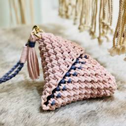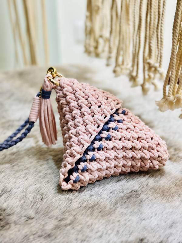 | 作品3:波西米亞風小包(一)(附材料1份) | 簡單的織片加上辮子和流蘇就是濃濃的波西米亞風 |