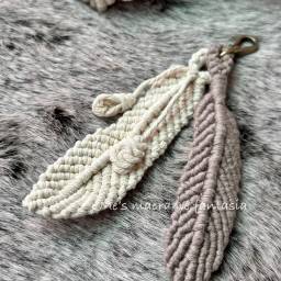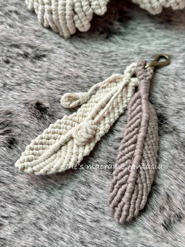 | 作品8:羽毛吊飾(一)(附材料一份) | 雙繞結編芯繩的變化就能創造栩栩如生的羽毛圖案 |