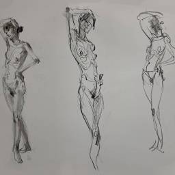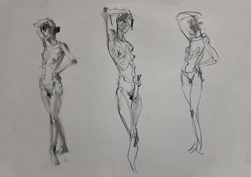| 第六週 | 6 | (模特兒)速寫人體動態線+身體錯位畫法 | 分析鎖骨與骨盆的錯位與扭轉畫法,並加入動態線使肢體自然律動(上) |